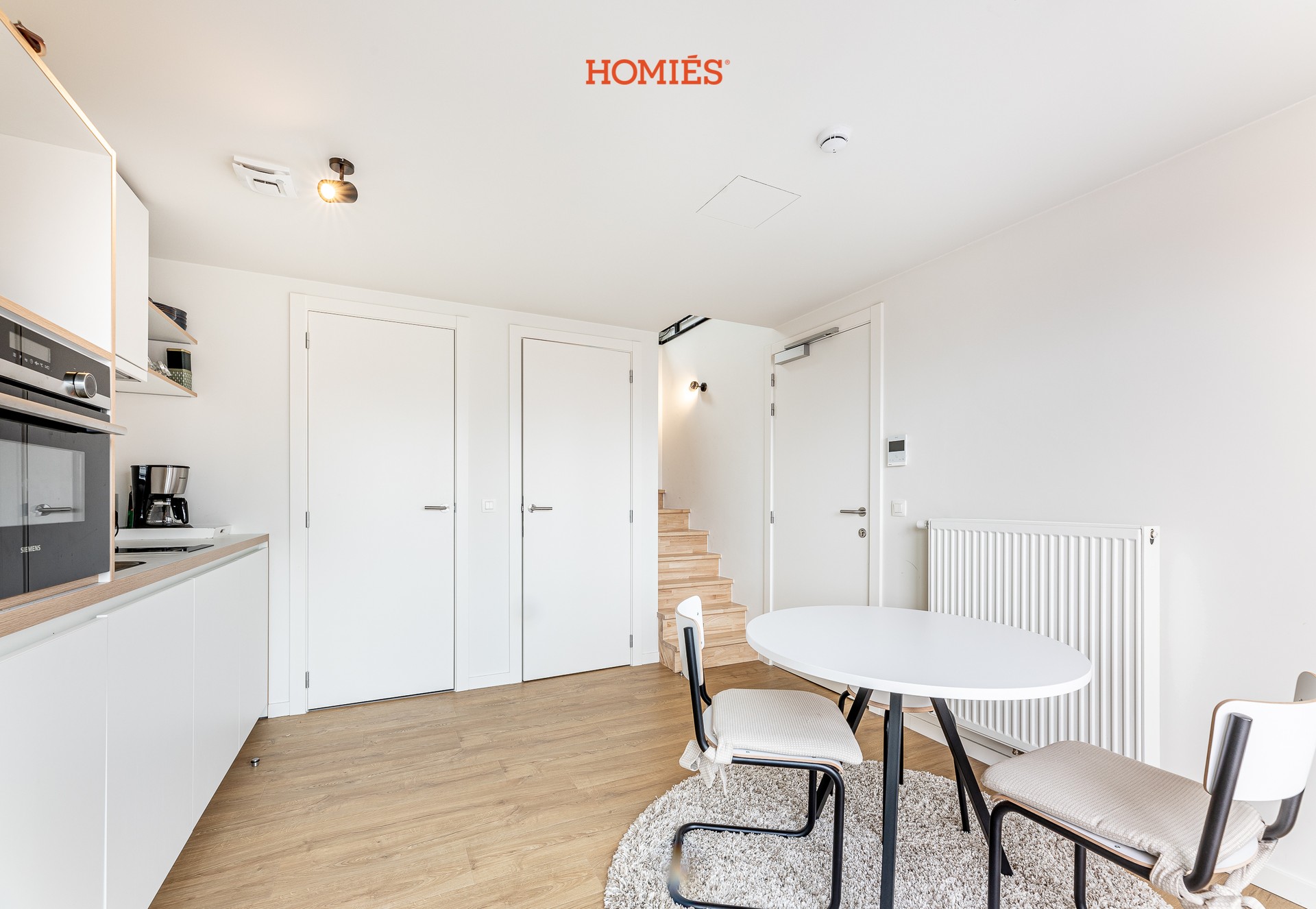 Graag stellen wij u deze moderne studio voor in het hartje van Leuven. De studio bevindt zich in de bruisende Diestsestraat waar café's, restaurants en winkels steeds nabij zijn. Bovendien bevindt ook het station zich slechts op een steenworp afstand. De kamer, gelegen op het 4e verdiep, heeft een oppervlakte van 40 m2. Ze bestaat uit een slaapkamer met bed-frame, bureau, kleerkast en privatieve badkamer voorzien van een douche, lavabo en toilet. Tevens beschikt deze studio ook over een eigen keukentje met inductiekookplaat, combi-oven, dampkap en ijskast. De grote raampartijen dragen bij aan het zeer licht en ruimtelijk gevoel. Daarbovenop beschikt deze studio over een privatief terras! Deze recent-gerenoveerde residentie bestaat uit 11 entiteiten en kenmerkt zich door zijn lichtrijke sfeer en kwaliteitsvolle afwerking. Op de tweede verdieping vindt u een ruime gemeenschappelijke ruimte met volledig geïnstalleerde keuken en aansluitend terras. Ideaal als investering of voor studerende kinderen! Heeft u vragen of zou u graag een bezoek inplannen? Aarzel dan niet om ons te contacteren via info@homies.be of via 016 22 82 22. HOMIÉS, an Eye for Immo.
