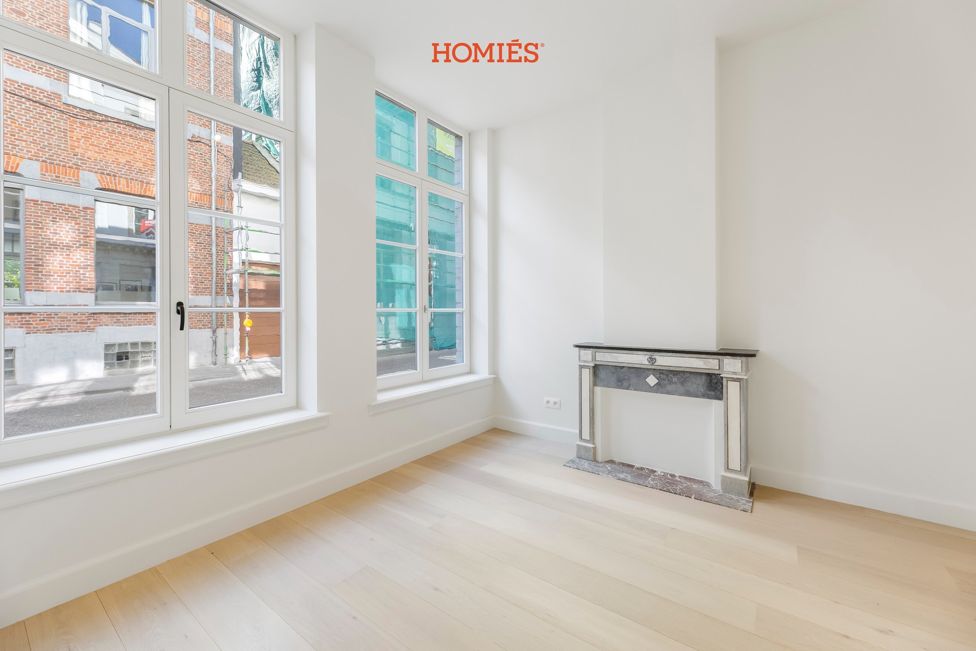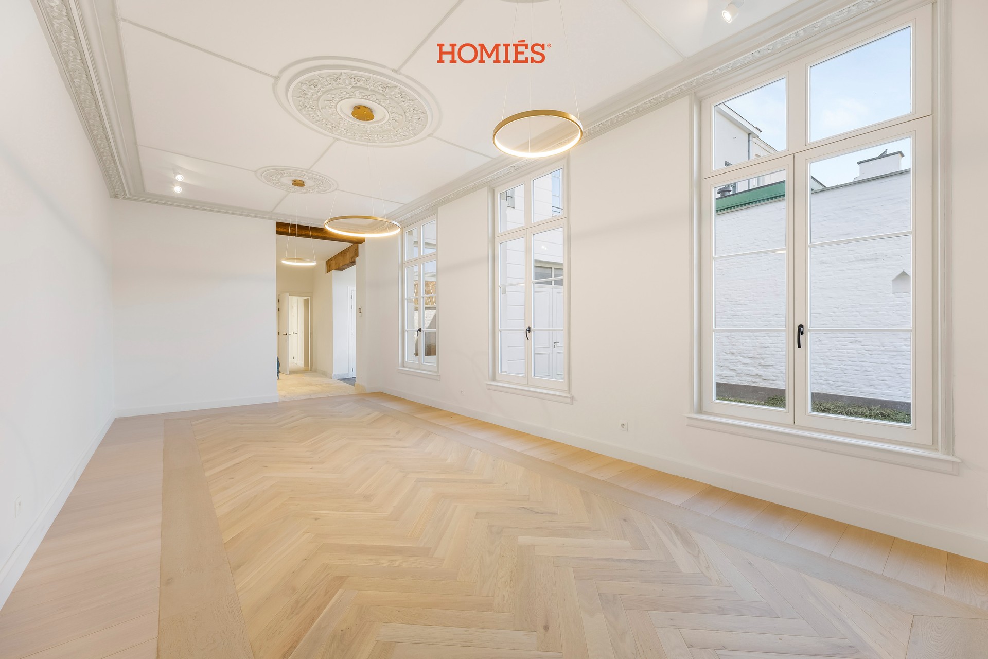 Dit exclusieve gelijkvloers appartement bevindt zich in het prestigieuze ‘Huyse Rosalena’, een prachtig gerenoveerd 18e-eeuws pand in het hart van Leuven. Het historische karakter werd met zorg en respect bewaard: originele elementen zoals hoge plafonds, sierlijsten en authentieke details zijn zorgvuldig gerestaureerd en stijlvol geaccentueerd. De gemeenschappelijke delen, met o.a. de statige trappenhal, ademen pure klasse. Met een bewoonbare oppervlakte van 120 m² geniet u van een ruime open leefruimte met zicht op een prachtig aangelegde privatieve tuin. Deze werd stijlvol ingericht met doordachte beplanting, een sfeervol terras en een multifunctioneel bijgebouw — ideaal als tuinkamer, atelier of hobbyruimte. Verder beschikt het appartement over drie slaapkamers, twee badkamers en een wasruimte. De open keuken en badkamers zijn nog te plaatsen, wat u de unieke kans biedt om deze volledig naar eigen smaak te personaliseren. De afwerking gebeurt met hoogwaardige materialen, met oog voor detail en comfort. U woont hier in een kleinschalig project van slechts vier appartementen, met alle rust en privacy die u zich kunt wensen. Op wandelafstand van de Vismarkt, het Klein Begijnhof en vlak bij het bruisende centrum van Leuven, combineert u hier een centrale ligging met een vlotte bereikbaarheid. Een extra troef is het energiezuinige EPC-B label. ‘Huyse Rosalena’ is wonen in pure klasse, waar historiek en hedendaagse luxe samenkomen. Meer info: info@homies.be / 016/22.82.22.