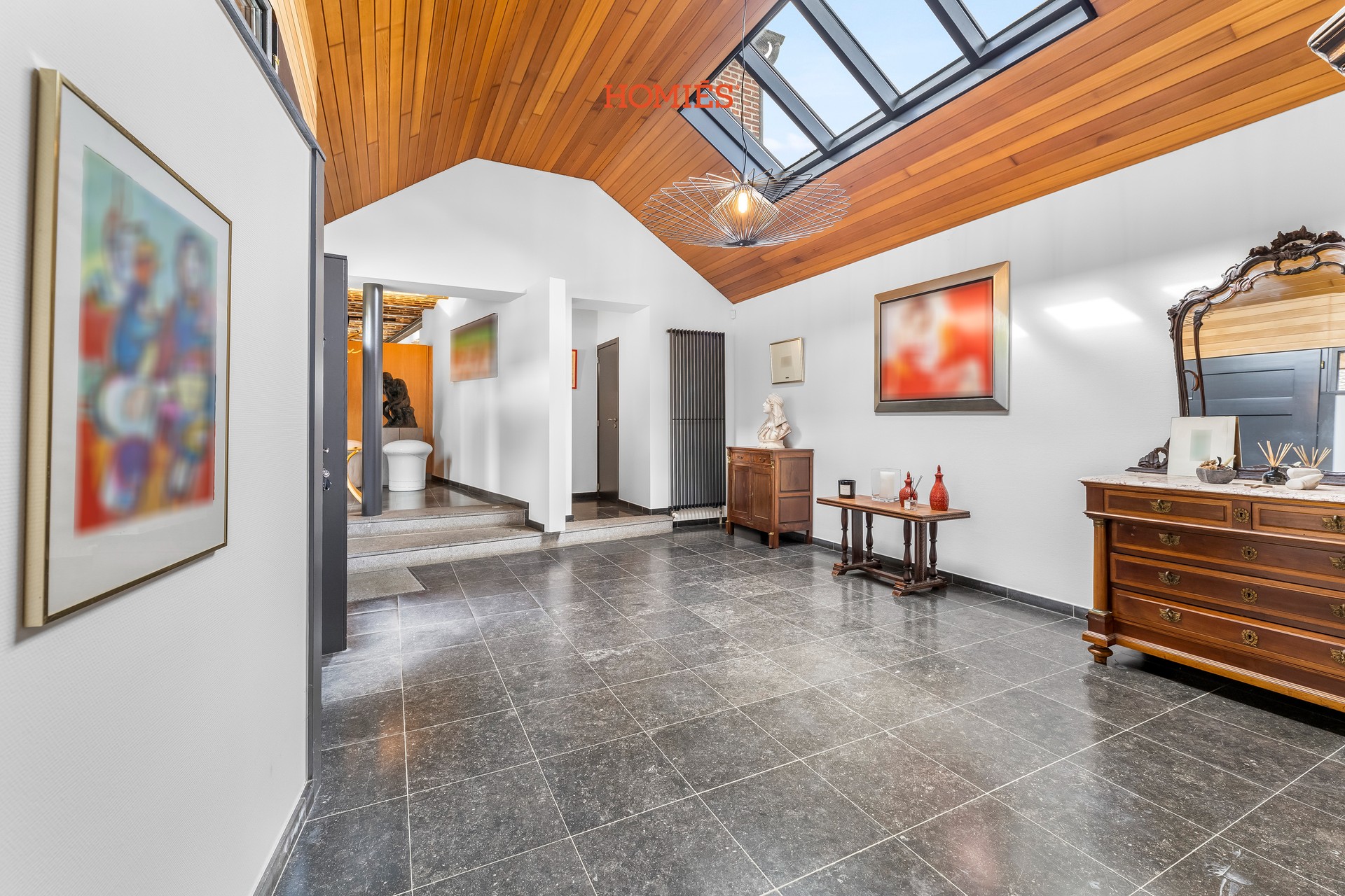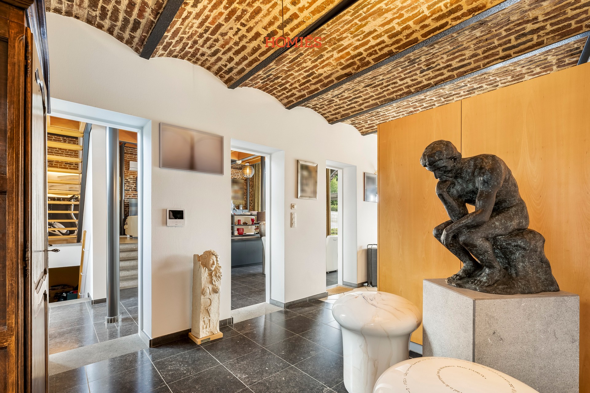 Dit karaktervolle pand bevindt zich in een gezellige straat in Hoegaarden, waar landelijke rust en hedendaags comfort samenkomen. De hoeve met binnenplein bestaat uit meerdere delen en combineert authenticiteit met modern wooncomfort. Het hoofdgedeelte verwelkomt u met een royale inkomhal met gastentoilet, een lichtrijke woonkamer, eetkamer en open keuken met wasruimte. Boven bevinden zich een bureau en een slaapkamer met ensuite badkamer. Vanuit dit deel stap je de zuidgerichte tuin in met verwarmd zwembad, aangelegd terras, poolhouse met buitendouche, overdekte lounge/buitenkeuken, allemaal met een fantastisch uitzicht op de groene omgeving. Het tweede woongedeelte omvat opnieuw een bureau, badkamer en drie slaapkamers. Verder is er nog een ruime zolder die gebruikt wordt als loft. Beide woongedeeltes beschikken over een kelder. Op het domein vind je vier parkeerplaatsen en een bijgebouw dat kan dienen als praktijkruimte, bureau (bijvoorbeeld voor vrije beroepers) of hobbyruimte. Dankzij 32 zonnepanelen, een laadpaal en recent vernieuwde ramen met driedubbele beglazing (2023) is de woning bovendien aangepast naar hedendaagse normen. De volledig omheinde tuin grenst aan een groene muur van bomen en achterliggende velden, wat absolute privacy biedt. Binnen zorgen hoge plafonds en de mix van authentieke en moderne elementen voor een unieke sfeer. Optie om de aanpalende bouwgrond aan te kopen. Een buitenkans! Interesse? Contacteer ons via info@homies.be of bel 016 22 82 22.
