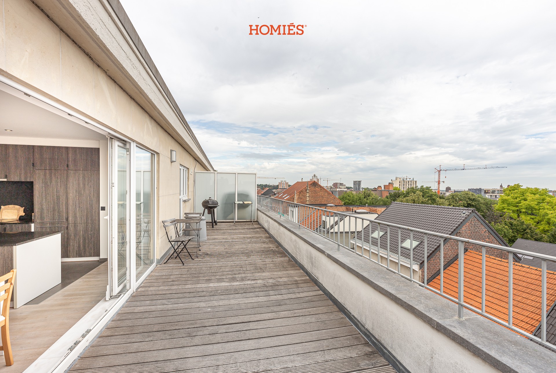 Dit dakappartement situeert zich op een absolute toplocatie in de Leuvense binnenstad, op een boogscheut van het historisch centrum met winkels, leuke resto’s, sportfaciliteiten en het station in de onmiddellijke omgeving. De stijlvolle woonst kenmerkt zich door haar zeer degelijke afwerking met gebruik van kwalitatieve en duurzame materialen. De absolute eyecatcher is het fantastisch privacyvol zonneterras met mooi panoramisch uitzicht over Leuven. In de open leefruimte met mooie parketvloer ervaart men een aangenaam gevoel van ruimte met mooie doorzichten en veel natuurlijke lichtinval. De geïnstalleerde open keuken presenteert zich mooi en functioneel en is voorzien van de nodige inbouwtoestellen. Aansluitend aan de keuken is nog een ruime berging/ bijkeuken met wasplaats voorzien. De centrale nachthal biedt toegang tot twee volwaardige slaapkamers, een badkamer (ligbad, douche en wastafel), een bijkomende berging en nog een apart toilet. Verdere praktische troeven van dit penthouse zijn ongetwijfeld: de aanwezigheid van een lift, twee bijkomende ruime kelderbergplaatsen en de mogelijkheid tot huur van een zeer ruime garagebox aan 120 euro per maand. Nutsvoorzieningen met aparte tellers. Dit is de ideale nieuwe thuis voor mensen die houden van luxe en comfort en dit in combinatie met een uiterst centrale ligging. Kortom, een ware aanrader! Vragen of interesse in een bezoek? Contacteer ons vrijblijvend via info@homies of 016 22 82 22