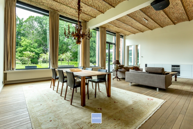 Op een domein van 1,63 hectare, krijgen privacy en rust een nieuwe betekenis. Binnen biedt deze parel u een overvloed aan ruimte. Door de hoge raampartijen in de leefruimte en de keuken met ontbijthoek heeft u altijd een spectaculair zicht op het omliggende domein. De praktische kant van de woning werd niet uit het oog verloren. Zo is het perfect mogelijk om het gedeelte met twee bureaus en gastentoilet professioneel aan te wenden. Ook aan bergruimte zal het u niet ontbreken. Op de bovenste verdiepingen krijgt u 5 slaapkamers en 2 badkamers elk met hun unieke uitzicht op het domein. De gedane energetische aanpassingen resulteren in een uitzonderlijk EPC-attest voor dit type van woningen.