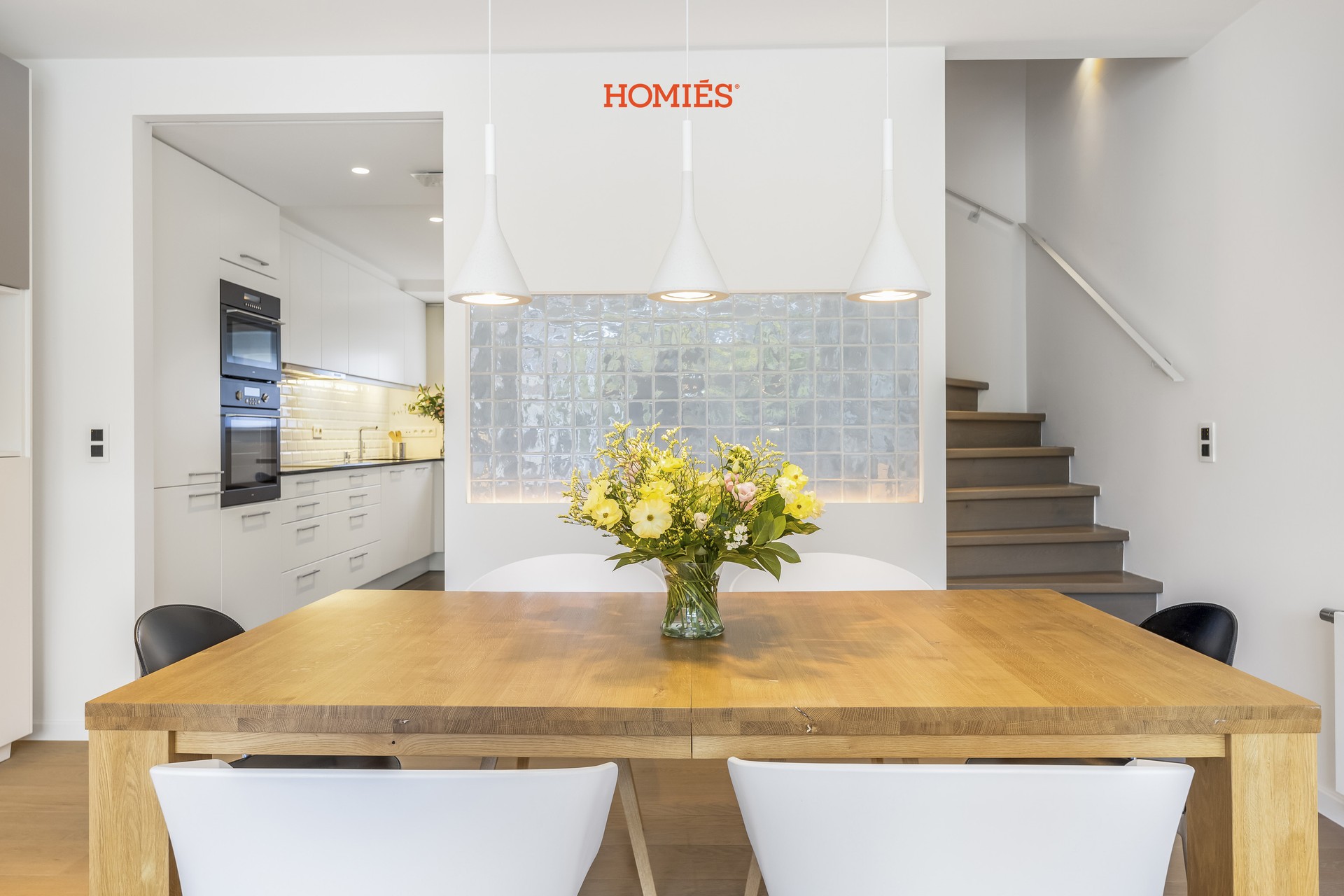In een verborgen hoekje van het bruisende centrum van Leuven, aan een charmant en verkeersvrij pleintje, ontdekt u deze zeldzame parel: een energiezuinige stadswoning van topniveau, verscholen achter een discrete gevel. Wat volgt, is pure beleving: 170 m² wooncomfort met overvloedige lichtinval, een doordachte indeling en een afwerking tot in het kleinste detail geperfectioneerd. De leefruimte met vide en dubbelhoog raam creëert een indrukwekkend ruimtegevoel en vloeit naadloos over in de luxueus aangelegde tuin met tropisch hardhouten wanden, sfeervolle verlichting en royaal terras. De maatkeuken met granieten werkblad en ATAG-toestellen sluit hier elegant op aan. Boven vindt u drie ruime slaapkamers, twee luxueuze badkamers, een lichtrijke bureauruimte met zicht op de tuin, een praktische berging, twee nachthallen met plafondhoge kasten (14lm in totaal) en een overvloed aan functionele details: massief eiken parket, domotica (o.a. Niko Home Control 2.0), ventilatiesysteem, elektrische gordijnen, designverlichting, Cat6-netwerk, videodeurbel, veiligheidscamera’s, overal vliesbehang voorzien en professioneel geschilderd… Alles in perfecte staat, volledig instapklaar. Kelderberging en twee fietsenstallingen inbegrepen.